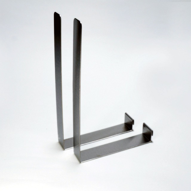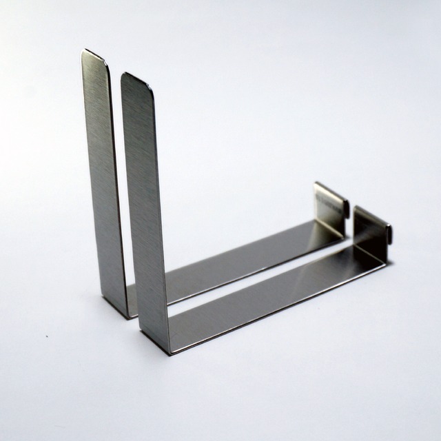 キッチンペーパーホルダー専用のステー中サイズ、2個1セットです。 前面の溝に引っ掛けて小物置き場になります。 ビニール袋やジッパー付き袋を下向きにセットすれば下から楽に取り出せる設計! ラップやアルミホイルなどは2個並べて置けます。 ステンレス製なので丸ごと水洗いもでき衛生的です。 別売りの専用のステーをお好きなように組み合わせて、オリジナルのキッチンラックにもなります! 自分の必要なキッチン小物を使いやすいようにカスタマイズして収納できます。 ※職人がひとつひとつ作り上げる商品の為、加工の際に若干の傷がつくことがあります。 予めご了承ください。 ※小物類は使用例ですので付属しておりません。 【1セット2個入り】 サイズ:10×2×9㎝ 耐荷重:1㎏まで 総重量:31g 材質:ステンレス 日本製
