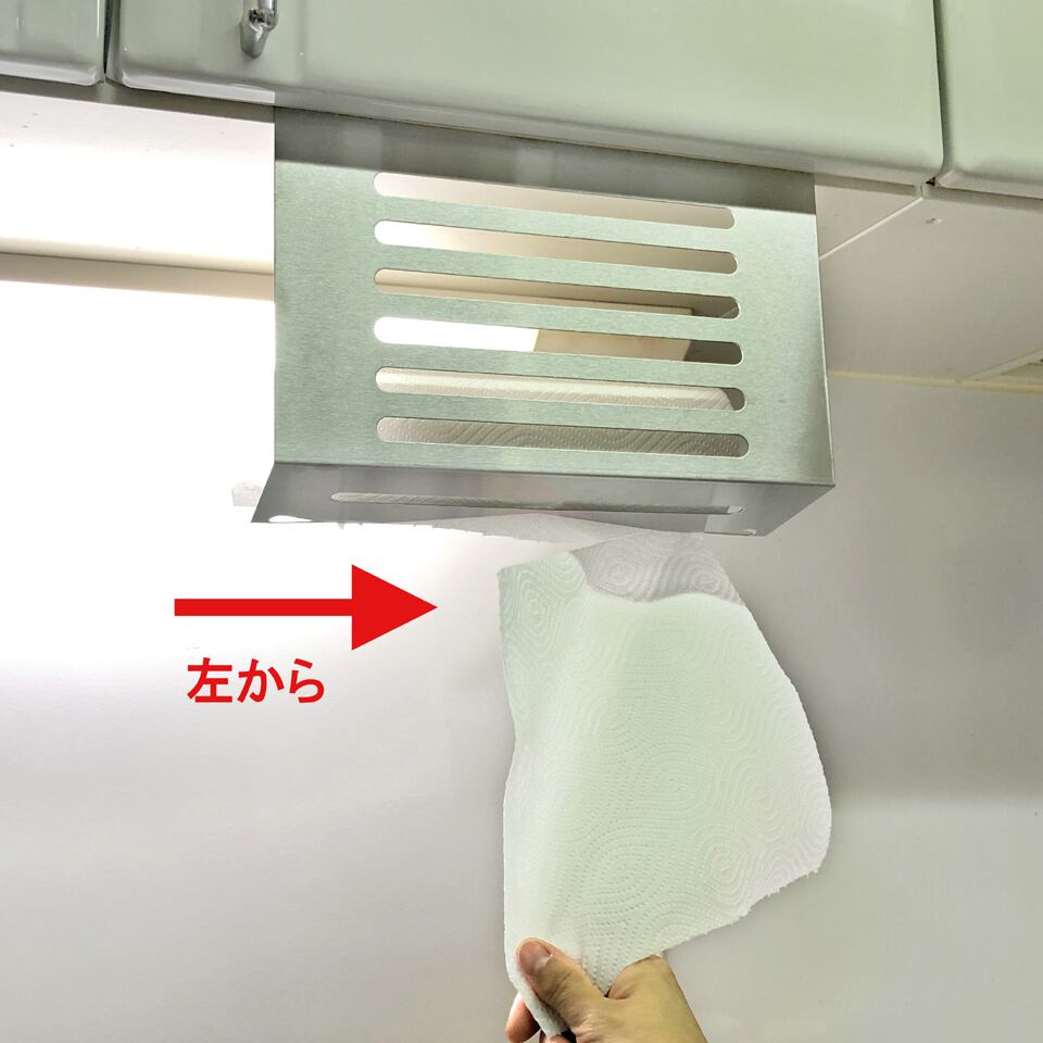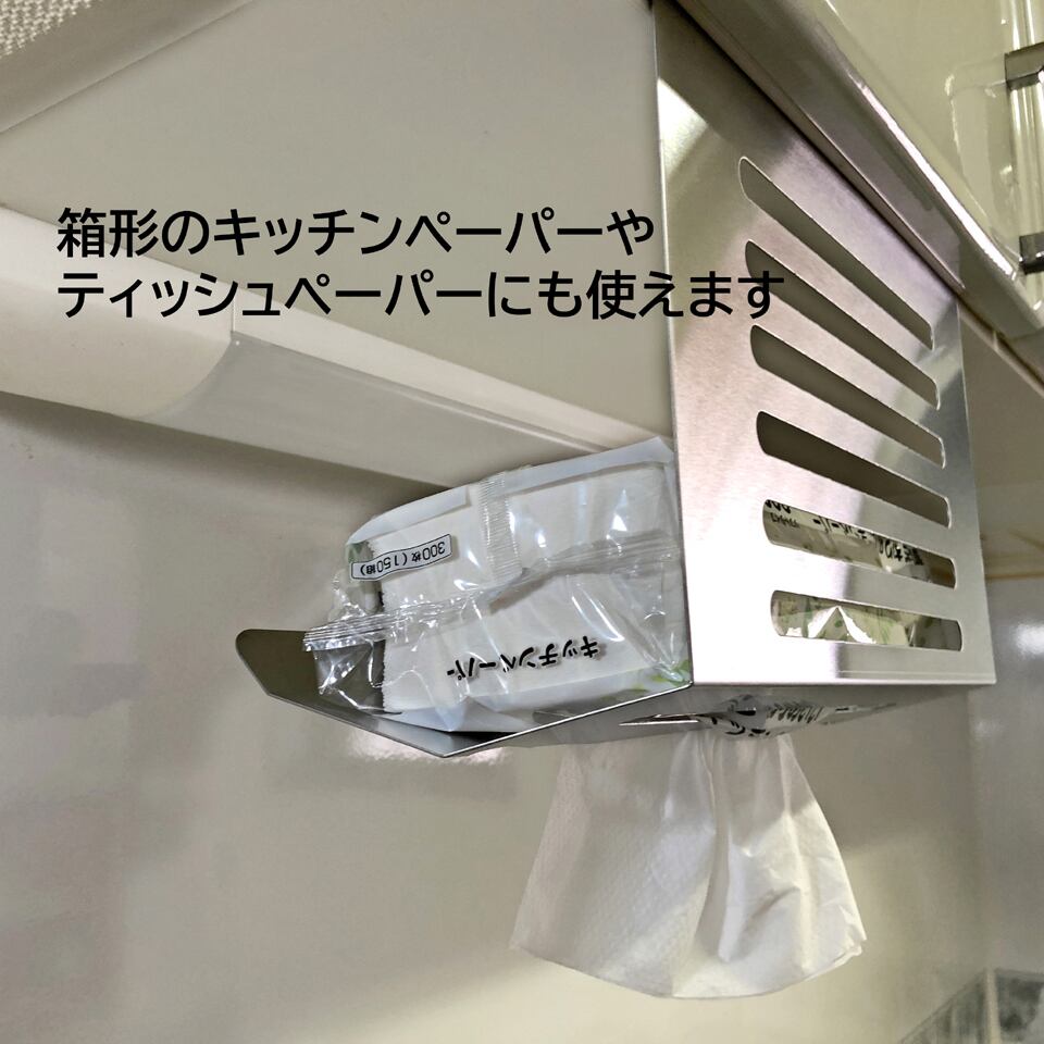 箱形のキッチンペーパーやティッシュペーパー、手を拭くタオルペーパーホルダーとしても使用できます。