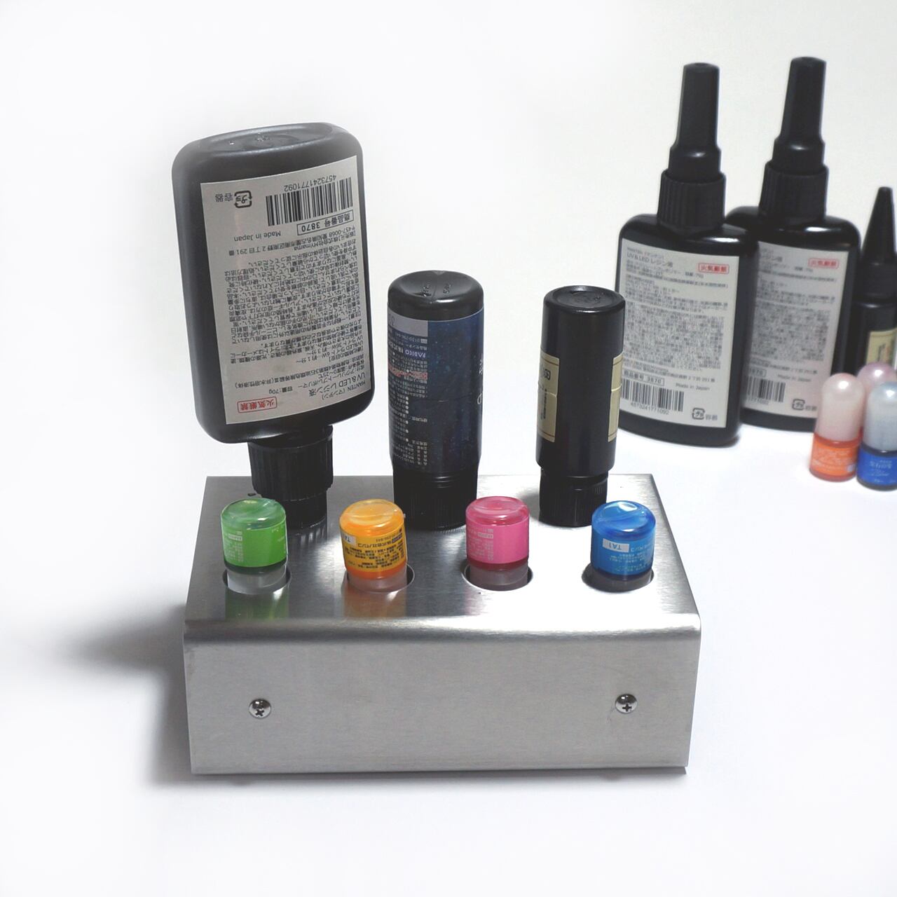 レジンボトル3本、着色剤ボトル4本まで収納可能。