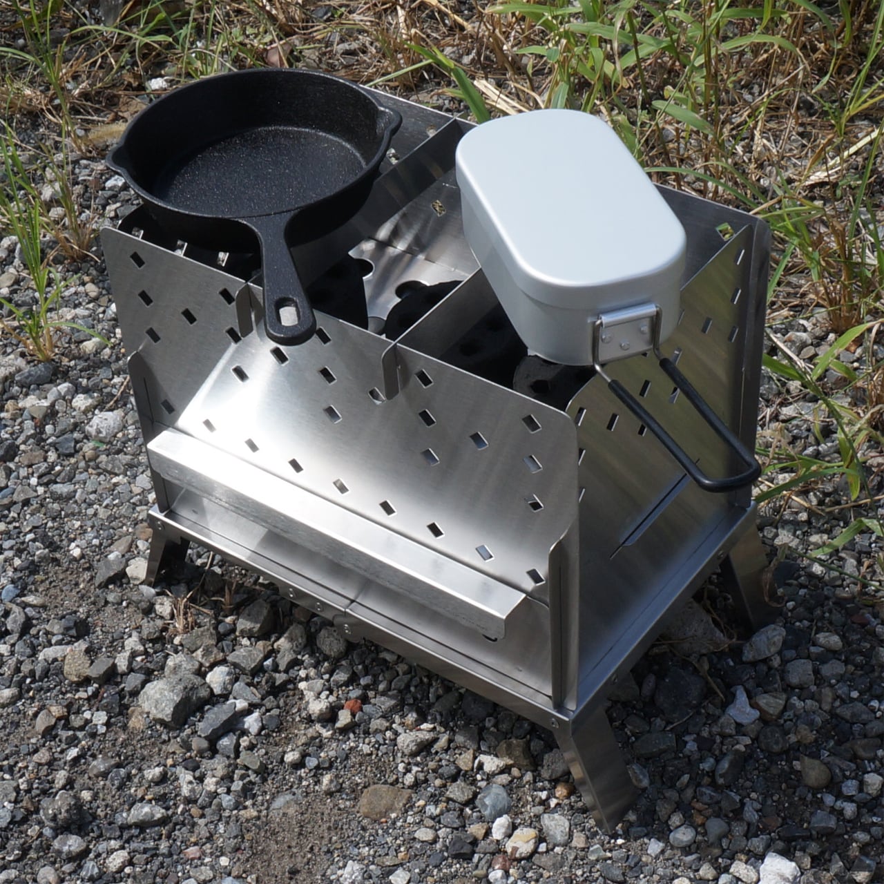 上部に設置する仕切り板を使えばスキレットやメスティン調理が可能。
